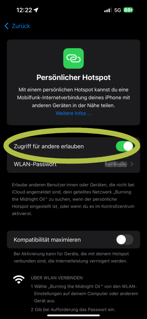 - Optional: Ändere das WLAN-Passwort, um den Hotspot zu sichern.