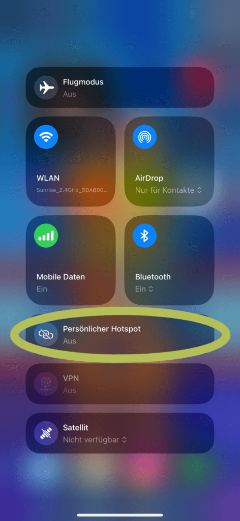 - Wähle «Persönlicher Hotspot»: Scrolle nach unten und tippe auf «Persönlicher Hotspot».